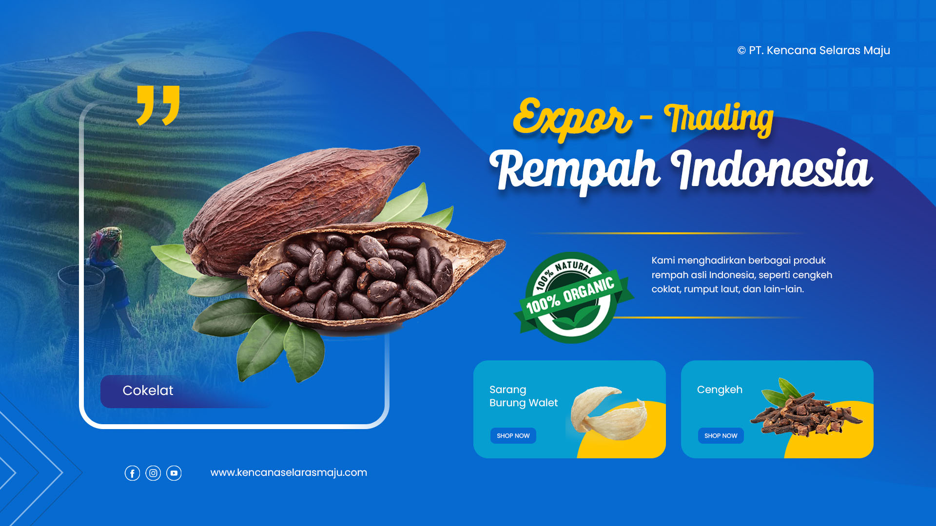 PT Kencana Selaras Maju adalah perusahaan yang bergerak di bidang penjualan rempah-rempah berkualitas tinggi. Kami berkomitmen untuk menghadirkan berbagai produk rempah asli Indonesia, seperti cengkeh coklat, rumput laut, dan berbagai jenis rempah lainnya, yang telah melalui proses seleksi ketat untuk memastikan mutu terbaik bagi pelanggan kami.